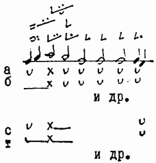 Речитативный мотив, в сокращенном варианте —мотив опевание... Просодическое звено из пяти простых просодем, используется редко... Обычно применяется краткий вариант... |