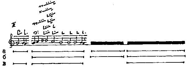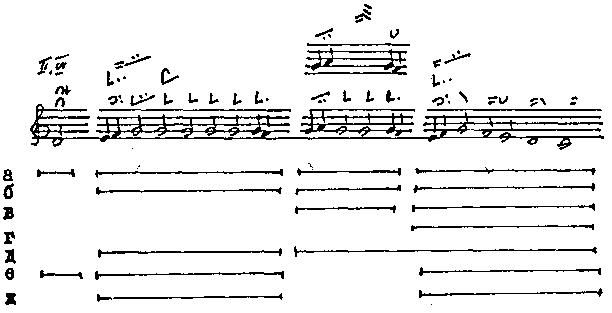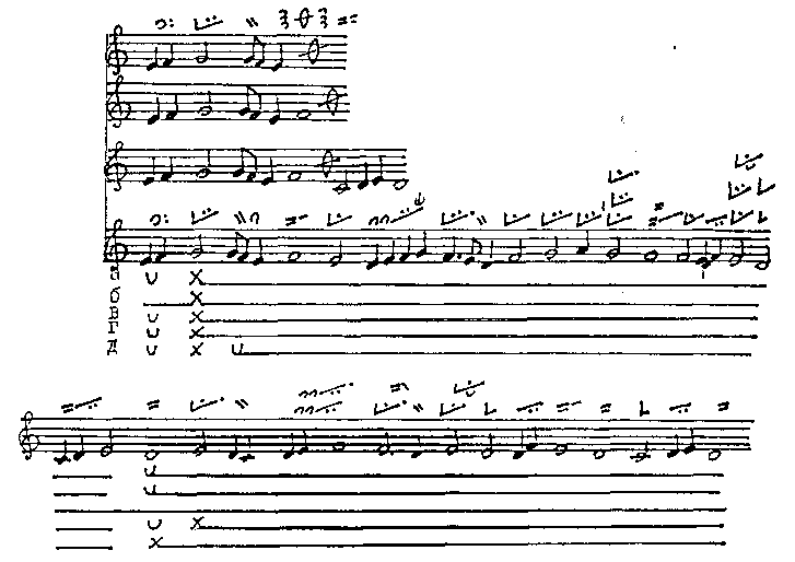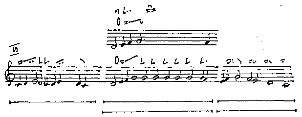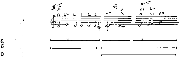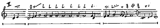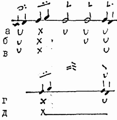 Речитативный мотив той же модели, где подступом служит краткая однозвучная тонема (I 3.1)... |