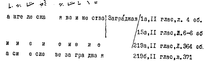 цифрами указана гласовая принадлежность формул.