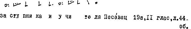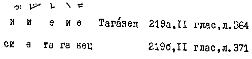 Двутонемное сочетание подступа к вершине... и вершины — краткая двузвучная восходящая и краткая однозвучная юнемы, КДВ/КО. Сложная акцентная просодема. Знамя стрела светлая. Более позднего происхождения варианты записи с определенной позицией в звукоряде... |