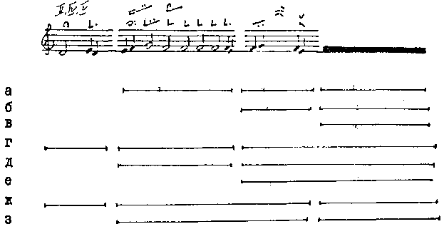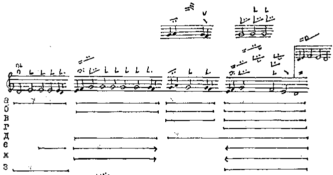 Речитативный мотив той же модели, где вершина реализована долгой однозвучной тонемой... |
