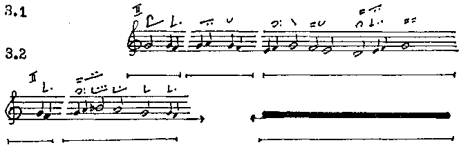 два речитативных мотива (II 3.3.1) и (II 3.3.2) реализованных на